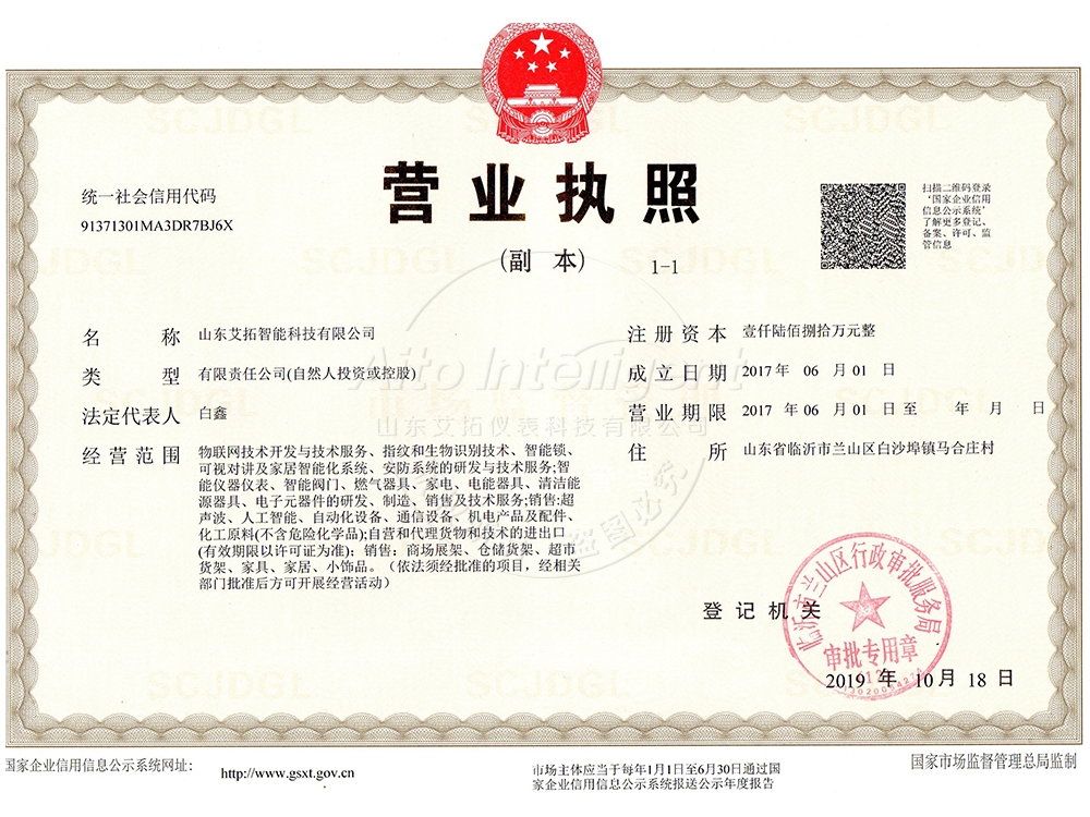 山東艾拓智能科技有限公司是以設(shè)計、研發(fā)、生產(chǎn)、銷售、服務(wù)為一體的綜合性新型企業(yè),我們一直致力于生產(chǎn)智能水表、智能電表、智能燃氣表、超聲波熱量表等四大系列50余款產(chǎn)品,公司注冊資金1680萬元,占地6000余平。